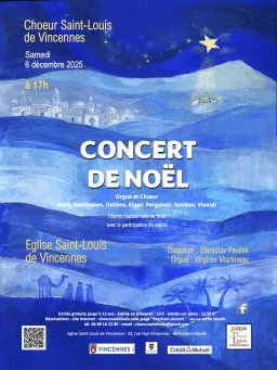 Concert de Noël - samedi 6 décembre 2025 à 17h00 à l'église Saint Louis de Vincennes avec Virginie Martineau à l'orgue.